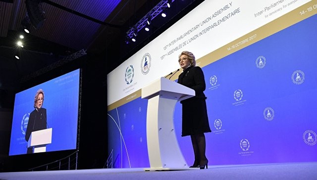 Спикер Совета Федерации Валентина Матвиенко также коснулась темы корейского кризиса на своем выступлении. Она пояснила, что Корейскую Народно-Демократическую Республику невозможно запугать, но загонять её в тупик очень опасно. «Нам надо делать все, чтобы вывести КНДР на переговоры, возобновить переговоры в международном формате шестёрки» - сказала Матвиенко, напомнив, что это должно быть и главной задачей ООН, а не «нагонять страх и угрозы в виде новых санкций и очередных учений».