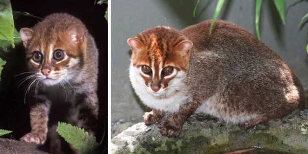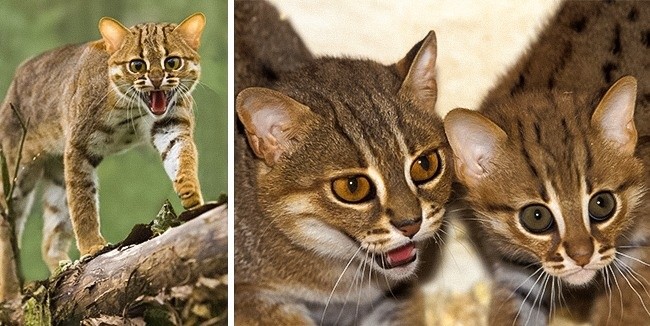 Ржавая кошка — одна из самых маленьких представителей кошачьих, чей вес достигает не больше 1,5 кг. Обитают эти малыши, популяция которых не превышает 10 тыс. особей, только на Цейлоне и в Индии, причем если «островные» кошки живут во влажных джунглях, то «континентальные» — в засушливых открытых местах. Мяуканье эти кошек очень схоже с мяуканьем домашних, да и приручить их довольно легко.