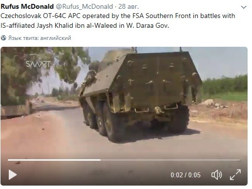 Вот такой новый БТР OT-64 из Чехии блогер обнаружил в августе у «Свободной сирийской армии» на южном фронте. Фото: twitter.com.