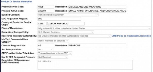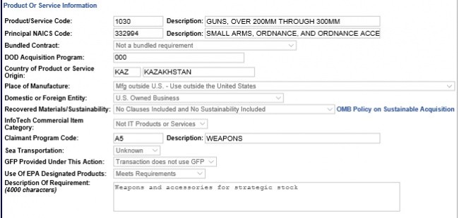 Purple Shovel закупила для SOCOM оружия из Казахстана на $ 4 млн. Скриншот с сайта fpds.gov.