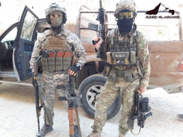 Чеченская группировка «Аджнад аль-Кавказ» с болгарскими противотанковым и леким гранатометами. Фото: twitter.com.