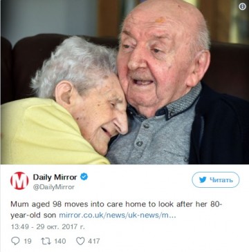 Британка перебралась в дом престарелых, чтобы ухаживать за 80-летним сыном