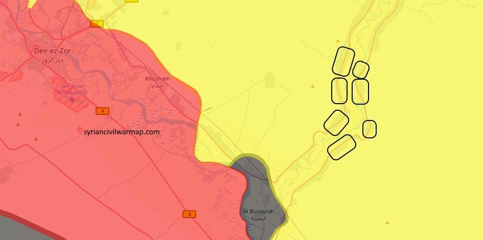 9.45. Правительственные силы — «Хезболла» и подразделения Сирийской арабской армии — в пустыне на востоке Сирии достигли границы с Ираком в районе Макфар Худуд аль-Хуш (иракская сторона) и находят в 30 км от «последней крепости ИГИЛ*» Абу Камаль.