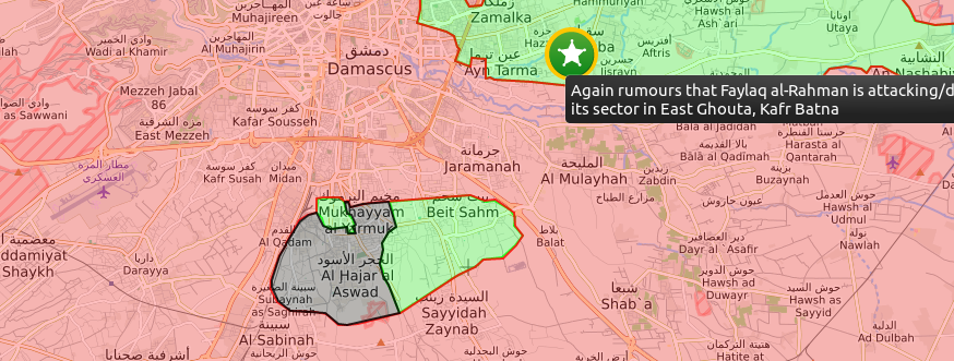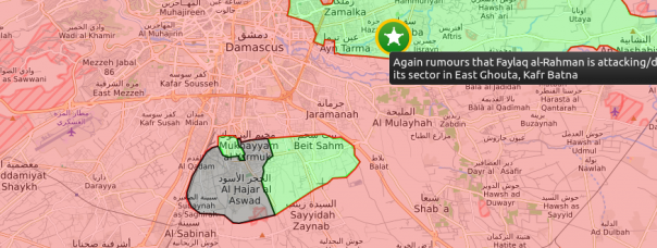 12.55. Источники в Восточной Гуте, Дамаск, сообщают об очередном обострении между группировками «Файлах аль-Рахман» и «Хайят Тахрир аль-Шам» — первые задержали некоторых боевиков «ХТШ» в районе Кафр Батна.