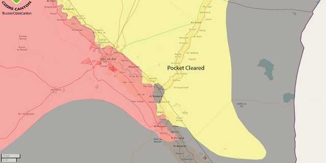 13.40. Силы курдского альянса SDF активно продвигаются на востоке провинции Дейр эз-Зор: на данный момент их передовые отряды находятся в 17 километрах от границы с иракской провинцией Анбар. Также сирийские источники сообщают и ликвидации боевиков, находившихся в окружении в районе аль-Бусрайя, расположенного близ слияния Евфрата с Хабур. Город и прилежащие высоты перешли под контроль курдов.