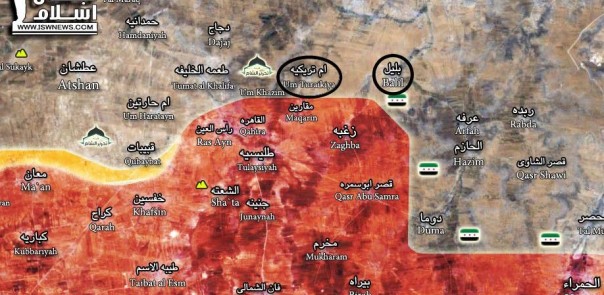 В последнее время правительственные силы освободили деревни Абу Гхар, Сарха Джануби, Мушайрифа, Хусайват, Джундия и Расх Кахаль, а также высоту Саван. Кроме того, САА и Силы национальной обороны вошли в населенный пункт Сахра Шамали, откуда поступала информация о напряженных боях между правительственными войсками и террористами.