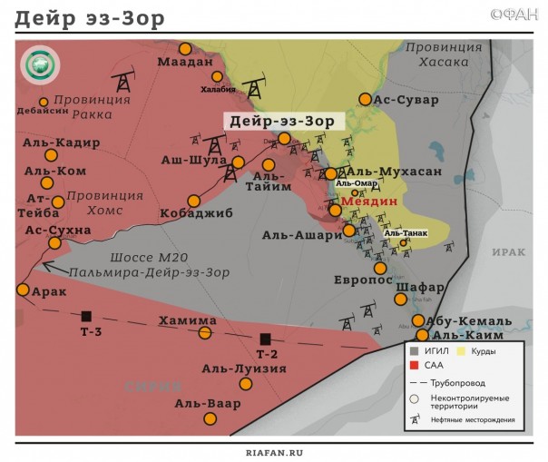 Напомним, за день до этого ливанская газета Al Akhbar сообщала, что курдские вооруженные формирования заключили с боевиками «Исламского государства» (запрещено в РФ) неофициальное соглашение в городе Маркада в провинции Хасака. В результате этого отряды террористической организации покинули город без боя и отправились в провинцию Дейр-эз-Зор для усиления своей группировки, действующей против правительственных войск.