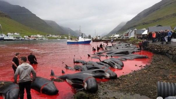 Снимки были сделаны ещё летом, но появились в Сети только сейчас. Впрочем, местные власти не видят в произошедшем ничего ужасного. Дело в том, что мясо гринд и дельфинов уже давно является частью национального рациона Фарерских островов. И если бы они не убивали животных сами, то им пришлось бы импортировать мясо из-за рубежа. Источник