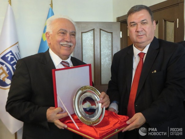 Лидер партии "Родина" Догу Перинчек с главой Федерации культурных обществ крымских татар Турции Унвером Селем