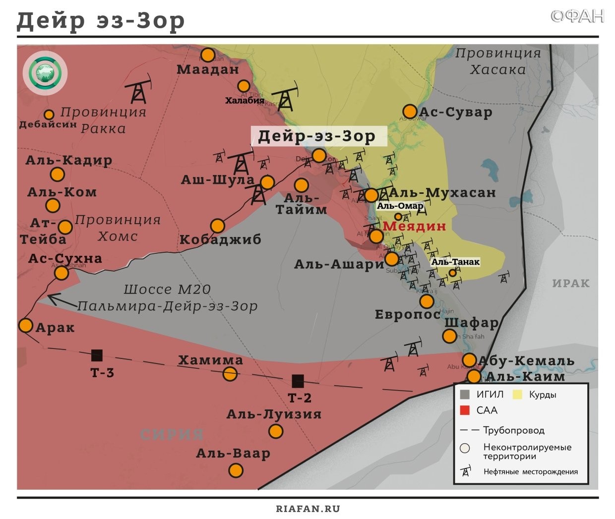 9.50. Курды продолжают продвигаться на востоке провинции Дейр эз-Зор — Тибан, находящийся «напротив» аль-Меядин через Евфрат на восточном берегу, находится под полным контролем SDF. Арабские источники сообщают о массовой миграции мирного населения провинции — обозы уходят в сторону пустыни, поскольку боевые действия продолжаются во все новых населенных пунктах, а разминировать уже освобожденные города силы альянса не успевают, возвращаться гражданским пока некуда.