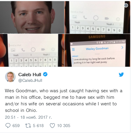 Законодатель-республиканец от штата Огайо Уэс Гудман был вынужден уйти в отставку после того, как был пойман на занятии однополым сексом в своем кабинете. Гудман был известен в США как борец за традиционные ценности, пишет Daily Mail.
