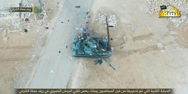15.20. Боевики на северо-востоке провинции Хама вновь подбили правительственный танк — медиа, близкие к группировке опубликовали фото Т-62, подбитого близ населенного пункта Мустариха. Бои здесь идут с переменным успехом, однако можно отметить медленное продвижение правительственных сил.
