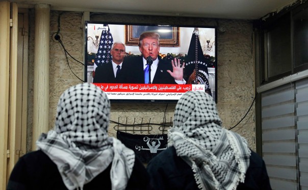 Трансляция выступления президента США Дональда Трампа о признании Иерусалима столицей Израиля в кафе