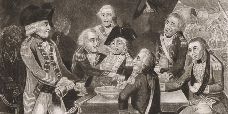 Общественное мнение той эпохи считало, что, если «офицер и джентльмен» мог выпить много алкоголя, он тем самым демонстрировал свои лучшие качества: силу воли, твёрдость духа и крепость здоровья. Как писал о нравах офицерства начала XIX века историк Вильям Дуглас: «В те дни большого пьянства… ни один офицер не считался годным к командованию ротой, если не осиливал за обедом трёх бутылок портвейна».