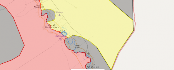 10.55. На восточном берегу Евфрата близ Сувайдан Джазира минувшей ночью шли столкновения сил курдского альянса SDF и боевиков группировки «Исламское государство»*. Кроме «анклава» боевиков на восточному берегу остаются и другие: наиболее значительный — в провинции Хомс, где боевики локализованы во внушительном «кармане» площадью порядка 7 тыс. кв. км.