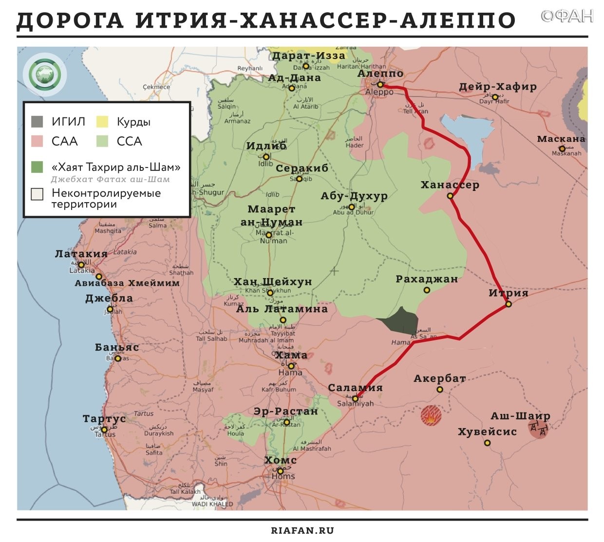 В настоящее время Сирийская арабская армия (САА) и боевая авиация РФ постепенно развивают наступление против «Джебхат Фатх аш-Шам» на этом направлении, наступая на главный оплот террористов со стороны южной части Алеппо и Северной Хамы.