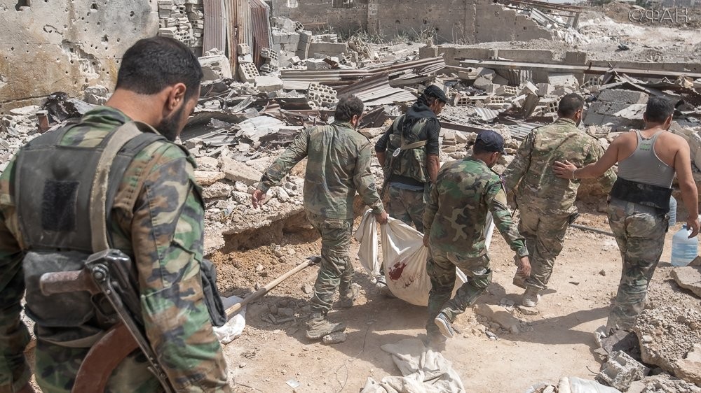 Корреспондент агентства САНА сообщил, что военнослужащие продолжают прочесывать здания и улицы различных районов города Дейр-эз-Зор для разминирования транспортных средств и зданий. Ими было обнаружено большое количество мин, пулеметов различного калибра, ПЗРК американского производства, пояса смертников, детонаторы для минометных снарядов и другие виды боеприпасов.