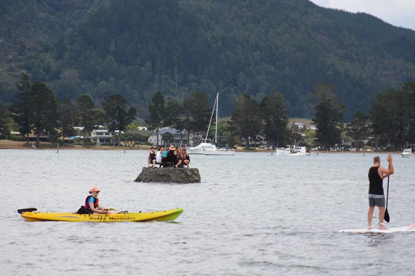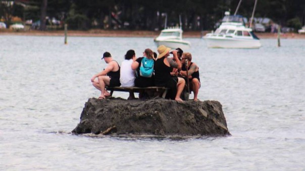 Жители города Коромандел возвели остров из песка в устье реки Тайруа. Они работали во время отлива: соорудили кусок земли и установили на нём стол с лавочкой. Когда вода вернулась в канун Нового года, они забрались на остров и принялись пить спиртное.