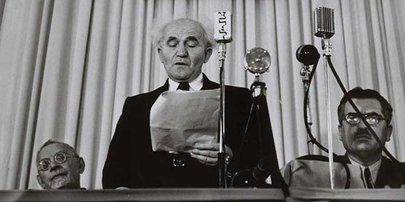Давид Бен-Гурион провозглашает независимость Израиля в Тель-Авиве 14 мая 1948 года