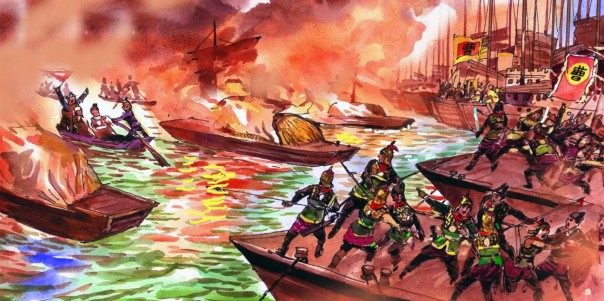 Знаменитый полководец Цао Цао, фактический правитель Китая при последнем императоре династии Хань Сян Ди, в 208 году привёл на юг страны более 200 000 воинов. Он собирался разгромить соединённые армии сепаратистов Сунь Цюаня и Лю Бэя. Стороны готовились к комбинированной операции на водах реки Янцзы и на её берегах. Основные силы Цао Цао разместил на кораблях огромного речного флота. Но его солдаты были непривычны к воде и жестоко страдали от морской болезни.