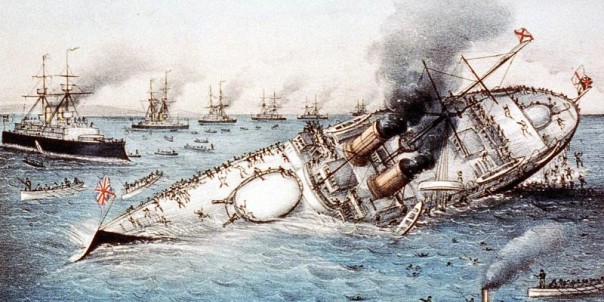 Только вот радиус циркуляции дредноутов почтенный адмирал рассчитал не совсем правильно. Ошибку заметили слишком поздно. Флагман был протаранен броненосцем «Кэмпердаун». Тот не был предназначен для бодания вражеских кораблей, но со своей внезапной ролью справился блестяще. Спустя 15 минут «Виктория» отправилась на дно вместе с половиной команды.