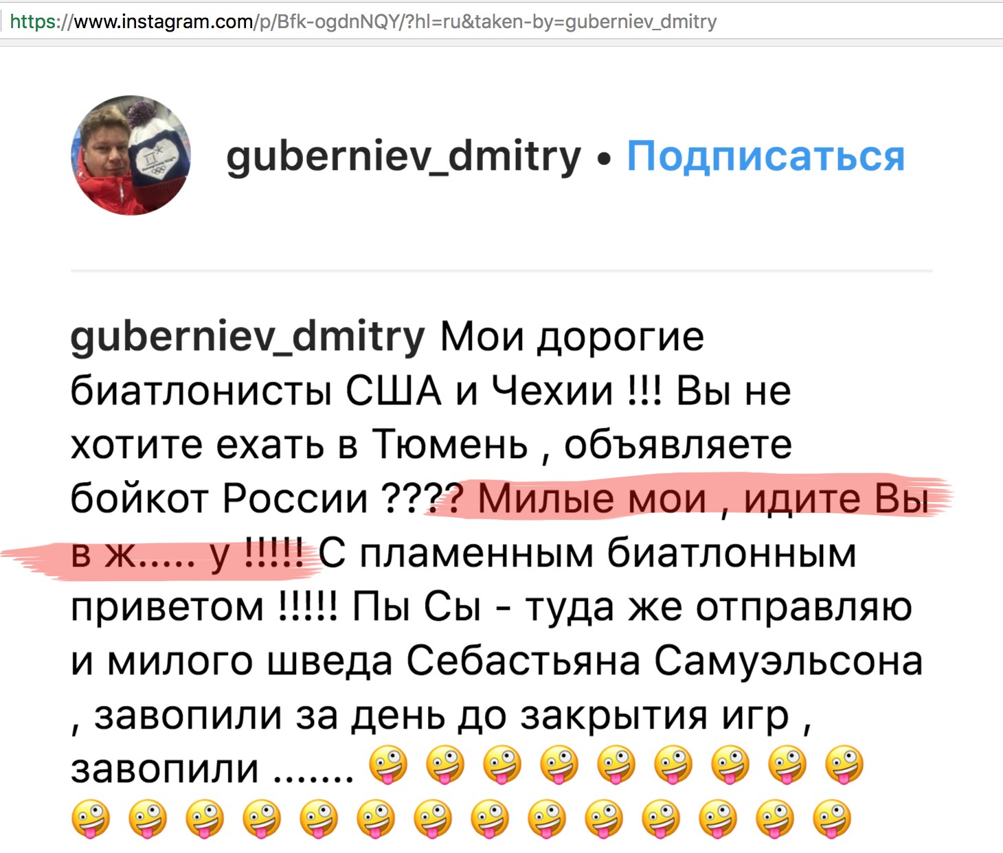 И теперь можно с чувством полной удовлетворённости взять одно из изречений мордатого комментатора Губерниева, но обратиться не только к некоторым биатлонистам…