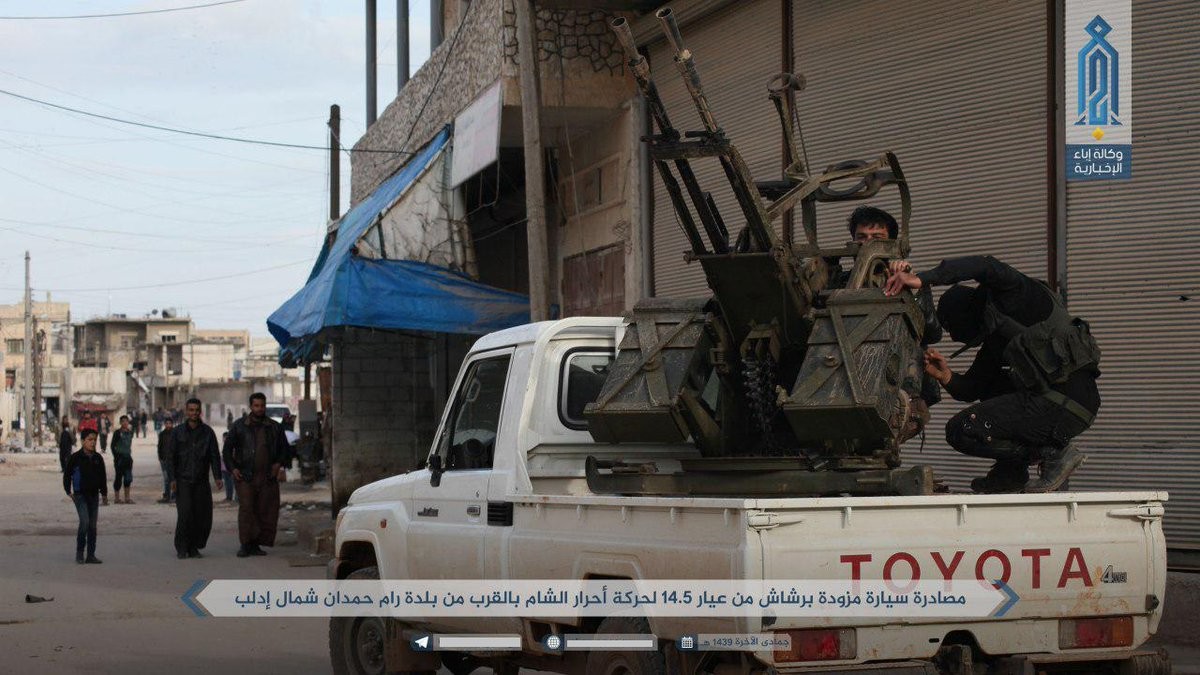 «Тахрир Аш-Шам»: подверглась авиаударам ВВС Сирии в Восточной Гуте; стягивает силы на запад Алеппо в район города Дарат Изза; напала на позиции САА в северной части Латакии; заявляет о потерях САА у города Аль-Америя в северной части Хамы.