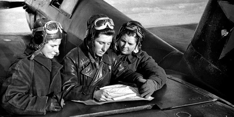 Эпизоды времён Великой Отечественной войны все знают гораздо лучше. СССР тогда по-прежнему держался в лидерах эмансипации. И дело было не только в тяжёлой ситуации на фронте. В межвоенный период по линии ОСОАВИАХИМ (общество содействия обороне, авиационному и химическому строительству) советские девушки активно штудировали лётное дело. Ещё до войны на лётчика выучилось около семи тысяч женщин!