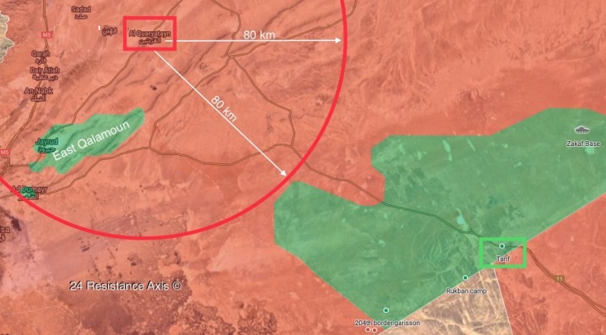 8 марта сирийское новостное крыло Хезболла сообщило о том, что САА расширила зону безопасности вокруг города аль-Карьятейн до 80 км. Данное действие было направлено на недопущение постаков вооружений и проникновения боевиков со стороны района ат-Танф, который контролируют коалиция во главе с США и ее сателлиты.