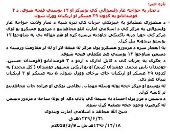 Официальный представитель Джейш аль-Ислам – Хамза Байракдар – заявил о том, что в пригороде населенного пункта Дума группировка боевиков провела атаку на позиции правительственных сил, в ходе которой было убито 20 солдат САА, а также уничтожена техничка, оснащенная 14,5 мм пушкой и поврежден танк Т-72.