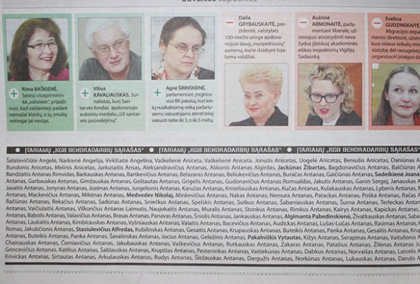 Каким образом в распоряжении редакции Respublika оказался список агентов, главный редактор Томкус умалчивает. Но когда он опубликовал часть документа, то там оказались имена нынешнего президента Литвы Дали Грибаускайте, «отца литовской независимости» Витаутаса Ландсбергиса, премьер-министра Саулюса Сквернялиса, бывших министров обороны Расы Юкнявичене и Юозаса Олекаса, экс-премьеров Андрюса Кубилюса и Альгирдаса Буткявичюса, а также многих других известных политиков, крупных бизнесменов, известных журналистов и деятелей искусств.
