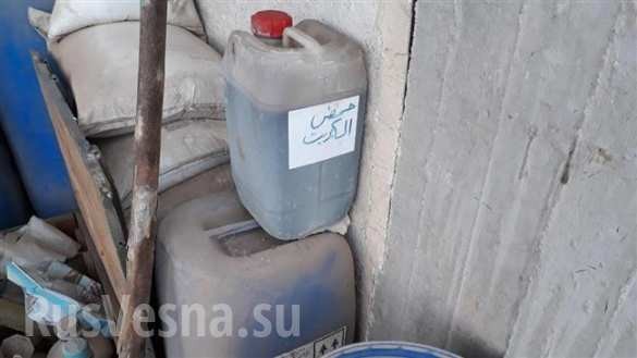 Сирийские армейские подразделения обнаружили небольшой завод, используемый боевиками-иностранцами для производства токсичного химического оружия в Восточной Гуте (пригород Дамаска).