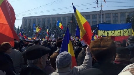 На данный момент на центральной площади Кишинева перед зданием правительства собралось около тысячи человек. Им раздают ленточки румынского триколора. В руках у манифестантов флаги Румынии. Со сцены звучат песни, собравшиеся периодически выкрикивают: "Униря" ("Объединение"). Территорию у здания правительства и по периметру площади патрулируют сотрудники правоохранительных органов.