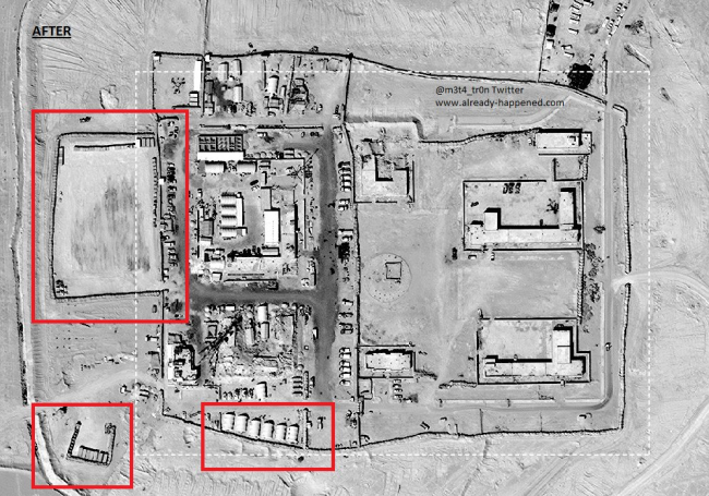 База в Аль-Танф находится на юго-востоке страны. «США, кажется, не собираются покидать Сирию „очень быстро“, а, наоборот, судя по последним спутниковым снимкам Аль-Танфа и прилегающих территорий, увеличивают свое присутствие в раздираемой войной стране», — написал блогер Already Happened.