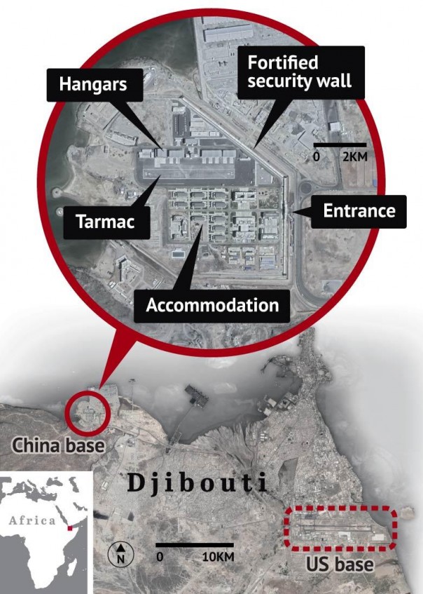Первая зарубежная военная база КНР была открыта в Джибути в августе 2017 года.