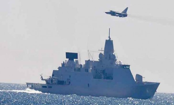 Речь идёт об истребителе Су-30СМ и фронтовом бомбардировщике Су-24М, которые уже проделали подобную «выходку» с экипажем американского эсминца «Дональд Кук».