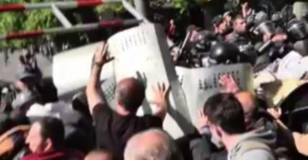 С сегодняшнего утра парализовано движение транспорта по всему центру Еревана - настоящий транспортный коллапс. Закрыта станция "Маршал Баграмян", перекрыто движение на станциях "Еритасардакан" и "Площадь Республики". Сорваны занятия в ряде учебных заведений. Радикалы во главе с Пашиняном ворвались в Ереванский педагогический университет, избив пытавшихся оказать им сопротивление студентов. Также они ворвались в здание Государственного медицинского колледжа. Произошли ожесточённые столкновения между протестующими и стражами правопорядка на проспекте Баграмяна, где находятся парламент и резиденция главы государства. Около полусотни раненых, в том числе сам вожак Пашинян. Он получил травмы рук и гематому на лице, и был доставлен на полицейской машине в больницу; после перевязки Пашинян вновь замечен в авангарде бунта. Некоторые полицейские получили ранения тупыми и режущими предметами, один из них экстренно прооперирован - у него повреждены вены и частично задета артерия. Основные административные здания защищает живая стена правоохранителей, натянута колючая проволока.