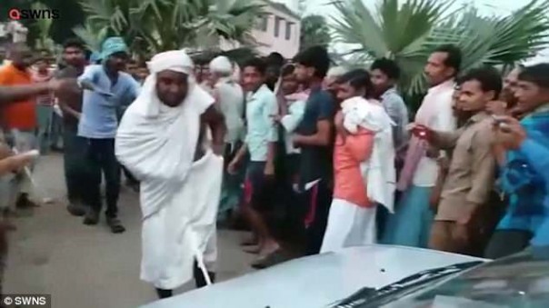Огромные восхищенные толпы собрались посмотреть, как монах из Индии по имени Пенис Баба тянет привязанный к собственным гениталиям автомобиль.