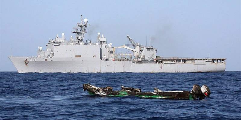 От такого гостеприимства один пират погиб, а шаланда загорелась. Выживших спасли моряки из досмотровой группы.