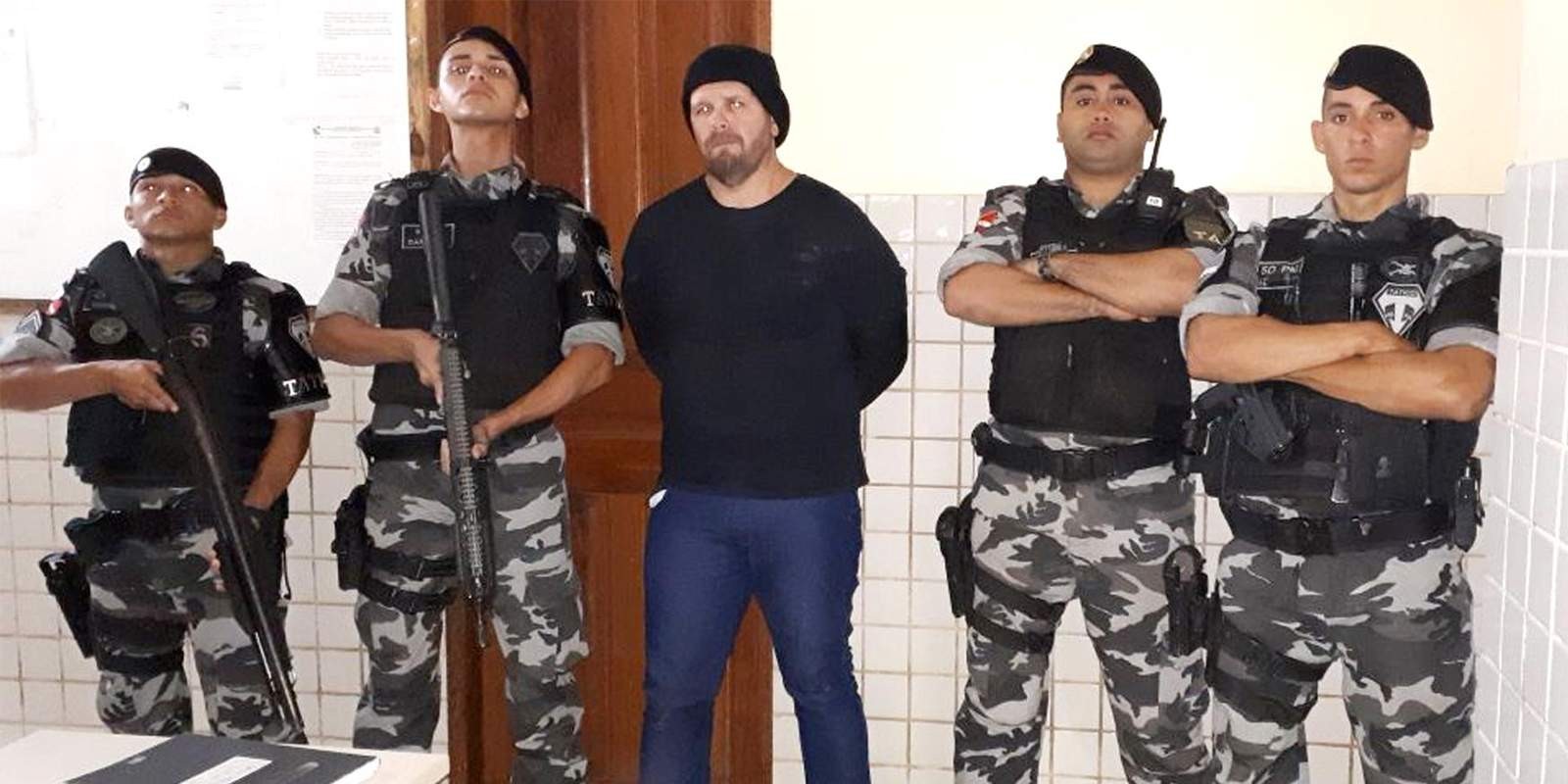 Бразильские полицейские и Жозе Ирандир Кардозо — один из задержанных убийц Питера Блейка