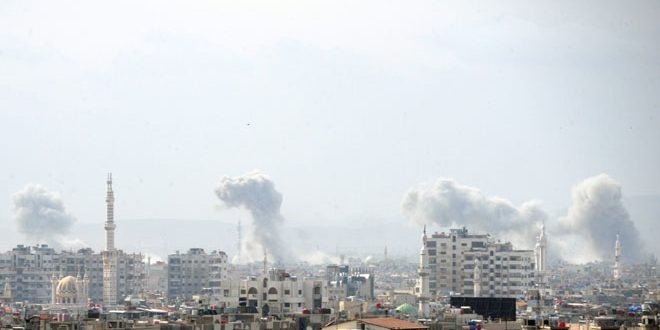 Военный корреспондент агентства САНА сообщил, что основываясь на информации разведки и проведении визуальных наблюдений были нанесены прицельные, точные удары по позициям, укрытиям и огневым точкам террористов в районе Хаджар Аль-Асвад на юге Дамаска. Бандформированиям был причинён значительный ущерб в живой силе и технике.