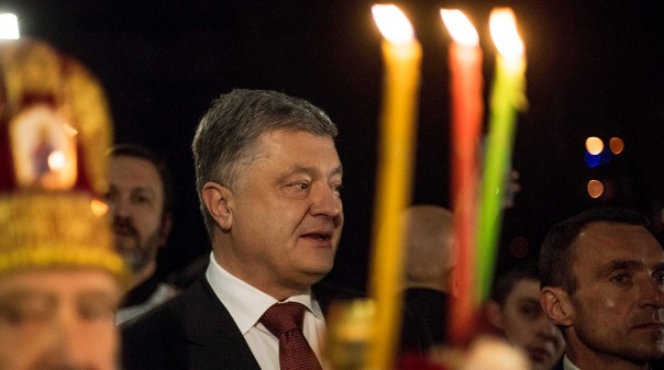 Петр Порошенко во время пасхального богослужения в одной из церквей в Киеве, 8 апреля 2018 года