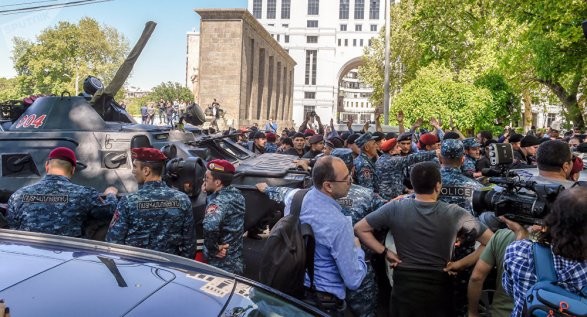 Полиция Армении начала стягивать в центр Еревана силы и спецтехнику после того, как по призыву Никола Пашиняна сотни демонстрантов вышли на улицы в знак протеста против действующей власти, сообщает Интерфакс.