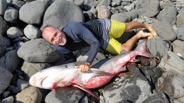 Австралийский серфер Мэтью Ли пляжился на мысе Леннокс Пойнт (штат Новый Южный Уэльс) и случайно столкнулся в море с акулой. По его словам, инстинктивно он выскочил на берег. Акулу машинально прихватил с собой.