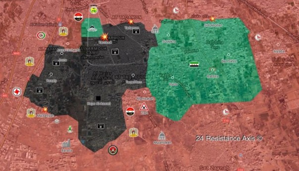 Сирийская армия, совместно с бойцами палестинского добровольческого формирования «Лива аль-Кудс» сумела продвинуться на юге Дамаска освободив район аль-Мадания.