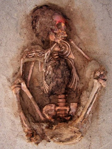 Останки жертв кровавого ритуала - ребенка и детеныша ламы, погибших ок. 1450 г. н.э.
