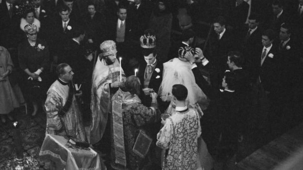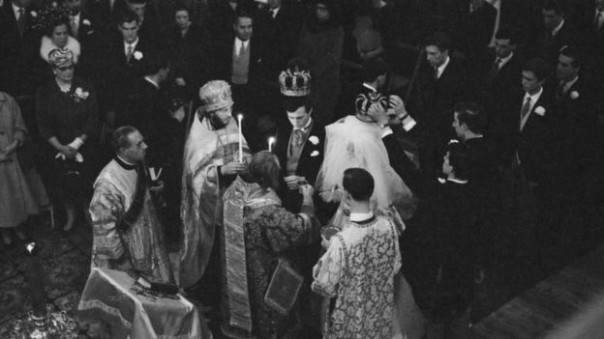 Венчание Питера Зиновьева и его жены Виктории в Русском православном соборе в Кенсингтоне, 1960 год