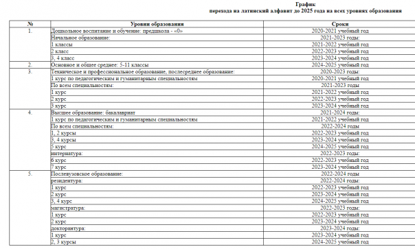 Приказом министра образования и науки РК Ерлана Сагадиева от 27 апреля 2018 года утвержден график перехода на латинский алфавит до 2025 года на всех уровнях образования, сообщает Kazpravda.kz.
