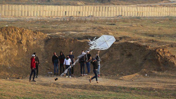 На фото палестинцы запускают воздушных змеев-зажигательные снаряды в сторону Израиля с целью вызвать там пожары. Без разницы где конкретно. Хоть в парках, хоть в жилых кварталах, хоть в детских садах, больницах или школах. На кого Аллах пошлет!