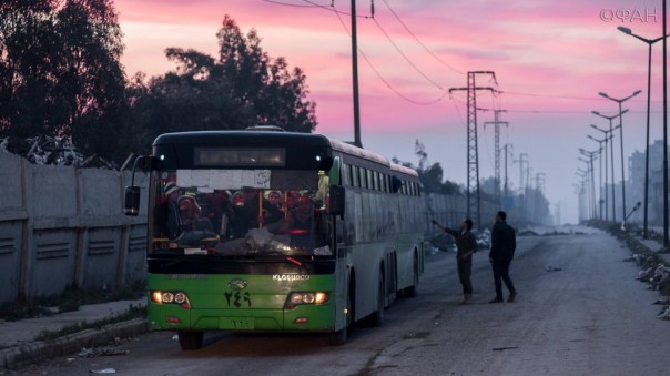 Новая колонна автобусов с боевиками, эвакуированными из южных пригородов Дамаска, вошла в город Калаат аль-Мудик на западе провинции Хама. Об этом пишет на своей странице в социальной сети Twitter (@MasarPressNet) один из местных источников.